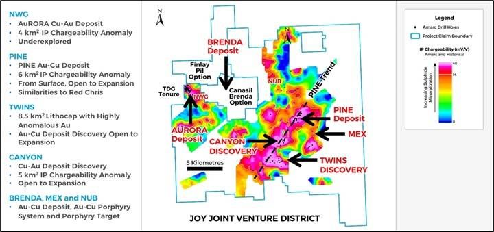 "The extensive TWINS sulphide system forms the largest porphyry lithocap in the JOY District - larger than that hosting the AuRORA Deposit," said Dr. Diane Nicolson, President and CEO. "Lithocaps represent the top of a volcanic or magmatic system which can conceal copper-gold porphyry targets below. A number of comprehensive, science-based airborne and ground exploration surveys are used to see through these lithocaps and guide discovery-focused drilling. The large lithocap at TWINS is proving to have the potential to conceal exciting porphyry copper-gold systems. Certainly, the AuRORA and TWINS Discoveries are proof of exploration concept for lithocap exploration across the JOY District. Anchored on the growing AuRORA Deposit, which the Amarc team believes is a Tier One asset in the making - there is outstanding potential for the emerging development of a world class district in the Toodoggone region that could be similar to the Golden Triangle. Comprehensive planning for the 2026 season is currently underway to continue to realize the full potential of the JOY District."