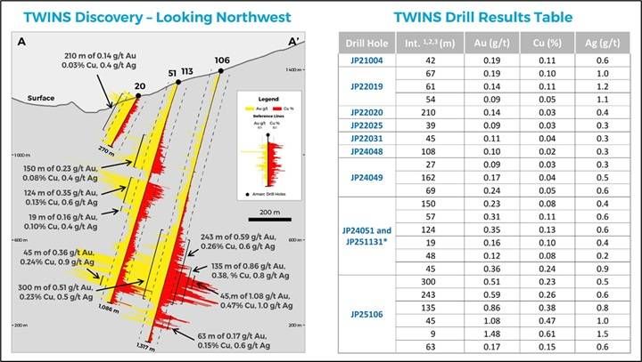 Figure 3 - TWINS Discovery 2025 Drilling Targets Major Porphyry Copper-Gold Deposit Below