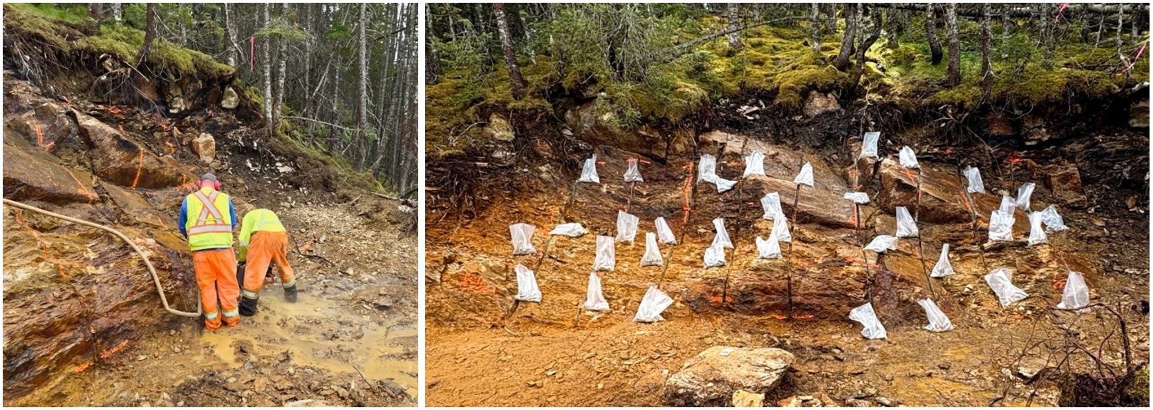 The Company plans to complete additional trenching and channel sampling along strike of the MMZ and within the Target Area for Zone Extension, where grab samples returned up to 2.17% Cu, 21.3 g/t Ag and 0.22 g/t Au. Follow-up work will prioritize these copper-rich zones while continuing to refine understanding of the southern MMZ where consistent multi-metal mineralization has now been confirmed at surface. All results will be integrated with historical drill and geophysical data to refine Phase I drill targets designed to test the subsurface continuity of this emerging, multi-metal VMS system along more than 750 metres of trend.