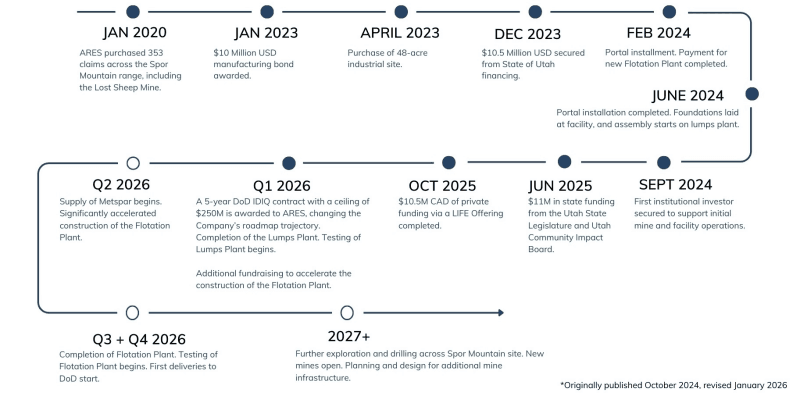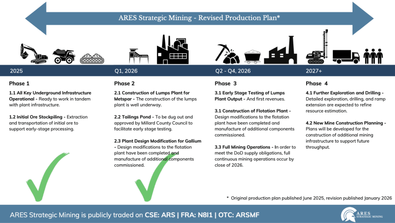 Vancouver, B.C., February 5, 2026 TheNewswire - Ares Strategic Mining Inc. (CSE: ARS) (OTC: ARSMF) (FRA: N811) is pleased to announce an expedited roadmap to the production of acidspar. The initiative will include an acceleration of the planned expansion of mining activities at the Spor Mountain, as well as fast tracking the construction of the flotation plant so the Company can produce acidspar to meet its Pentagon contract obligations. This initiative will include imminent drilling activities to expand mining targets and the number of mines available to Ares, as well as bringing in crews to ensure Ares can produce the highest grade fluorspar products in 2026.
