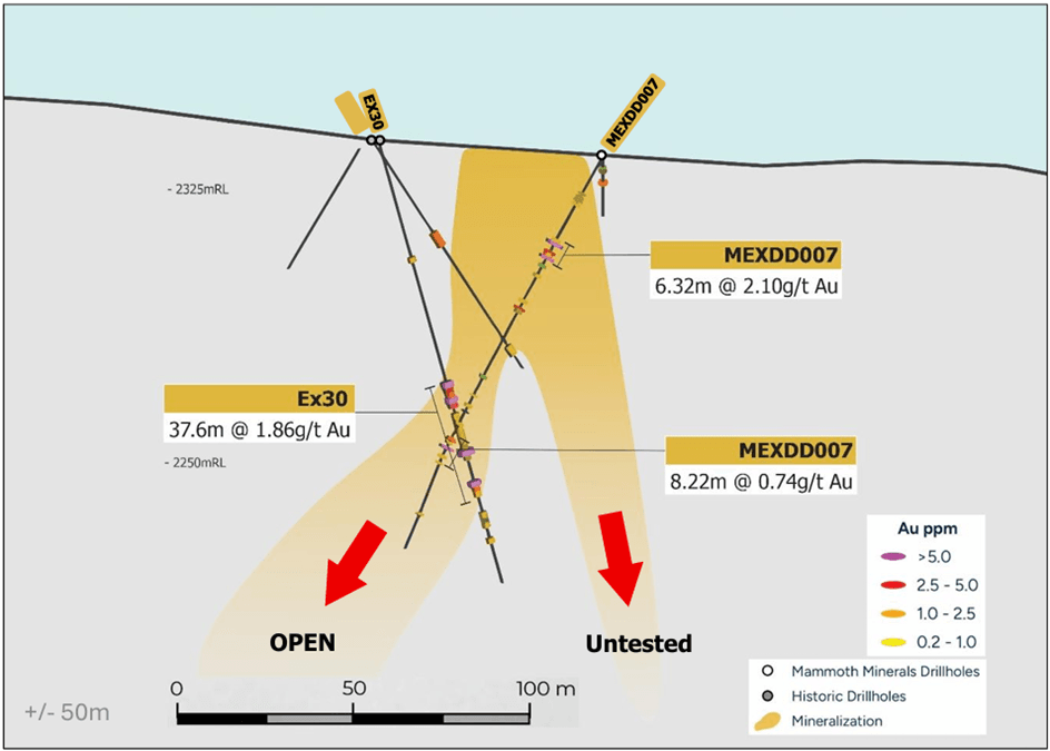 Figure 2: Cross-section of MEXDD007 (source: Mammoth Minerals).