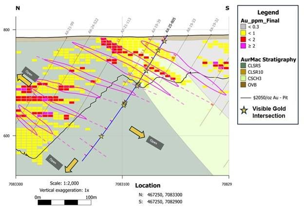 "These high-grade intersections from Powerline continue to strengthen the continuity and to define the high-grade portions of the deposit, supporting the refined geologic and mineralization model, the upcoming Resource update and Preliminary Economic Assessment," said Tara Christie, President and CEO. "Visible gold associated with high-grade intervals was identified in every drill hole in this release across an over 500m long zone of the center of Powerline (from AX-25-810 to AX-25-805). These results highlight the continued potential for expanding near surface, high-grade mineralization."
