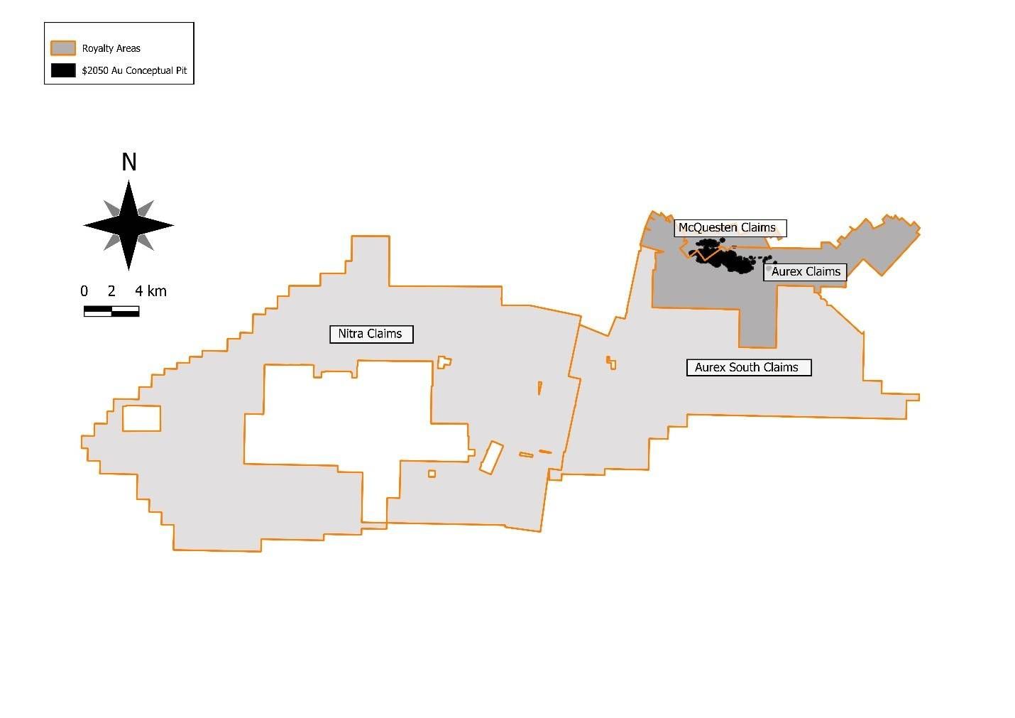 Further to public documents filed in the Ontario court on February 26, 2026, Franco-Nevada has entered into a royalty purchase agreement[1] with PricewaterhouseCoopers Inc., the receiver and manager (in such capacity, the "Receiver") for Victoria Gold Corp. ("Victoria"), to purchase the NSR covering the McQuesten and Aurex properties for $52.2 M. The McQuesten and Aurex properties consist of 92.6 square kilometers ("km2") (510 claims) out of the 720 km2 total project area for AurMac. The NSR purchased by Franco-Nevada applies to an area which includes the existing Resource and is shown in Figure 1. The area represents approximately 13% of the total AurMac project area.
