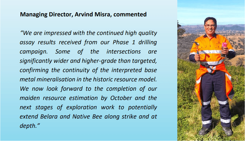 - New assay results from Phase One RC resource drilling confirm more high-grade zinc mineralisation at Belara.