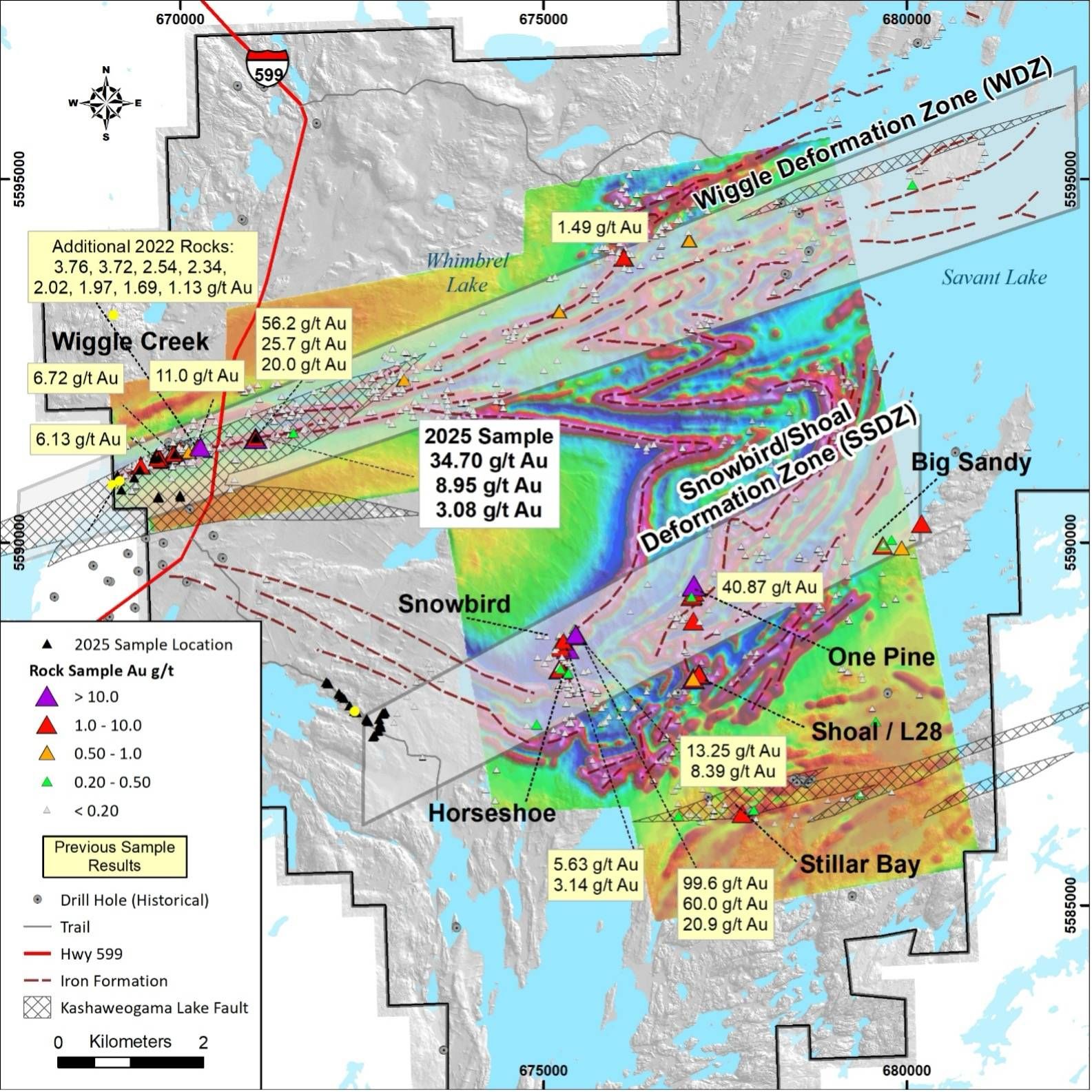 The Savant property is also host to numerous iron formation type gold occurrences including Snowbird and Horseshoe occurrences which will be priority targets in the upcoming 2026 field program.