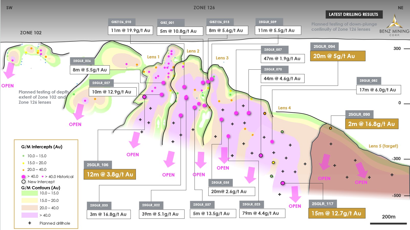 "Both targets carry genuine potential to deliver discoveries of similar size and scale to the Zone 126 trend. Historical drilling intersected high-grade mineralisation near to surface; Benz plans to drill down-dip and down the NE-plunge of both these targets, testing positions that remain completely open at depth. This untested upside presents a very exciting opportunity for the Project heading into 2026.