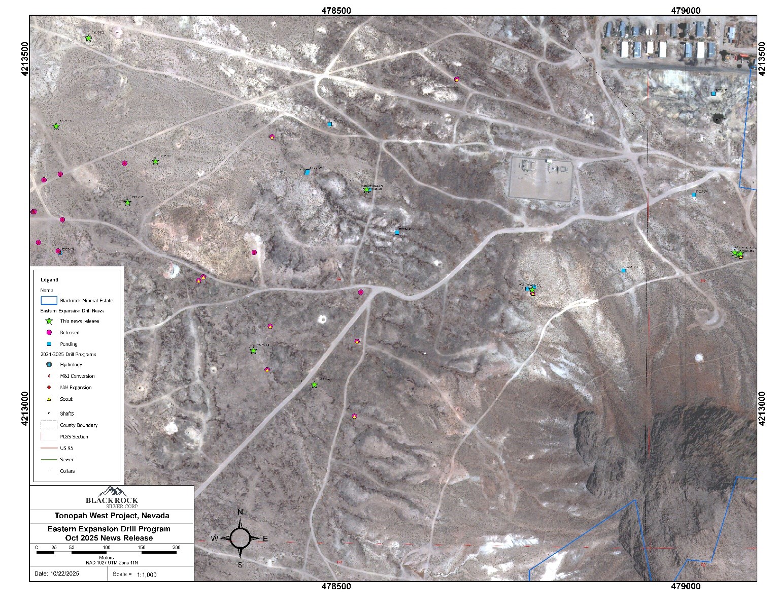 Vancouver, British Columbia--(Newsfile Corp. - October 27, 2025) - Blackrock Silver Corp. (TSXV: BRC,OTC:BKRRF) (OTCQX: BKRRF) (FSE: AHZ0) ("Blackrock" or the "Company") announces partial assay results from its fully-funded eastern expansion drill program (the "Eastern Expansion Program" or the "Program") at its 100% owned Tonopah West project located in Nye and Esmeralda Counties, Nevada, United States ("Tonopah West").