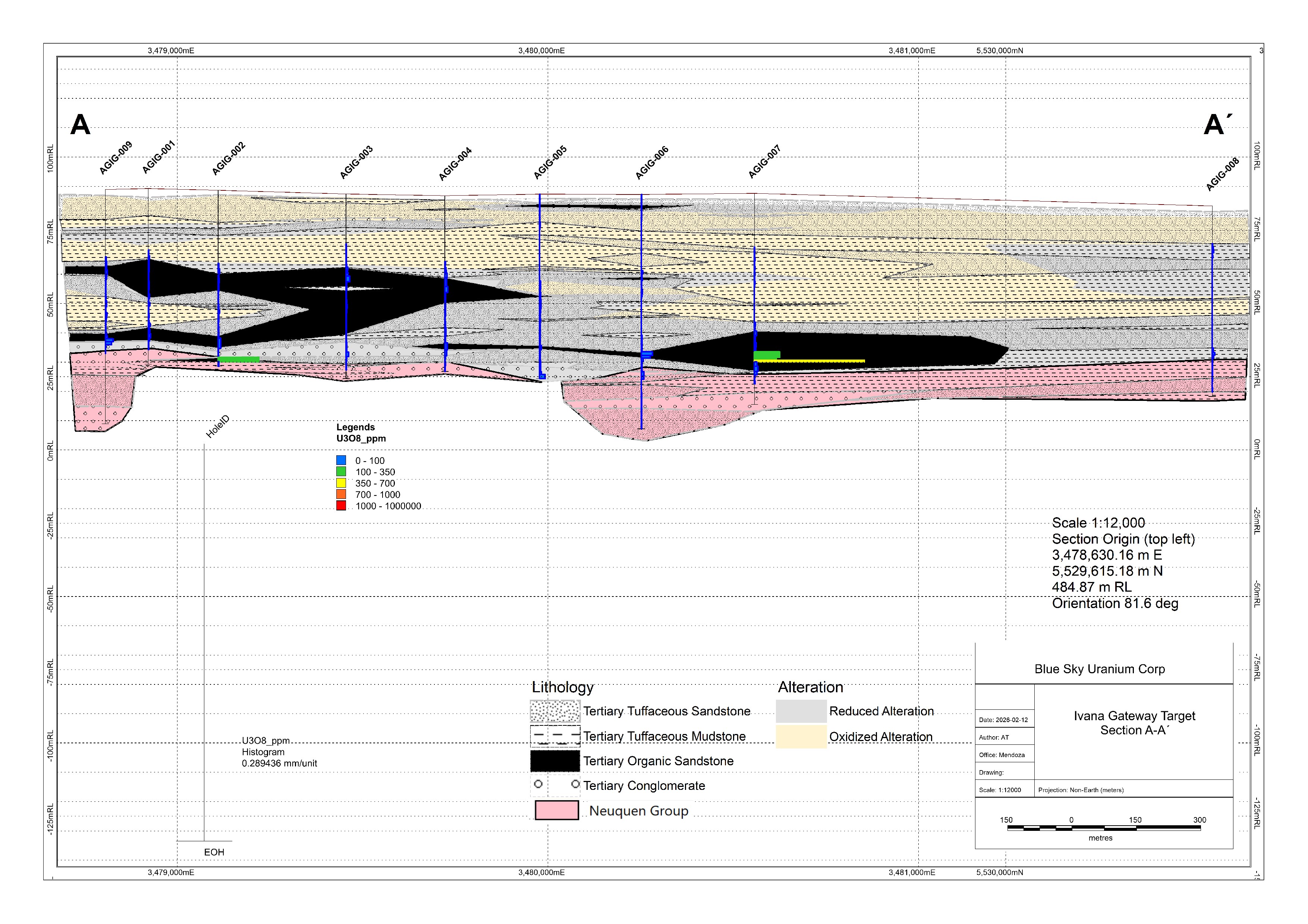Nikolaos Cacos, Blue Sky President & CEO commented, "Ivana Gateway continues to demonstrate the geological characteristics we associate with uranium mineralization along the Amarillo Grande trend. The combination of confirmed uranium intercepts to the east and an untested strong coincident IP anomaly to the west provides a clear and compelling target for the follow-up drilling that we are initiating. We believe this work has the potential to further expand the mineralized footprint within trucking distance of the Ivana Deposit."