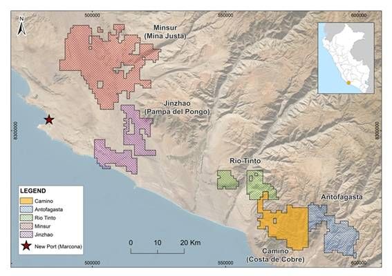 The proposed San Juan de Marcona Port represents a significant strategic advantage for Camino's Costa de Cobre copper project and the overall mining sector in southern Peru. Located approximately 125 km from Costa de Cobre, with direct access via the Panamericana Sur, the new mining-focused port is expected to improve logistics and efficiency by reducing transport distances and lowering costs for copper production exports in the area. With planned capacity of up to 47 million tonnes per year and infrastructure designed to handle bulk mineral shipments, the port may increase the economic viability of development-stage projects by improving operating margins and project NPV. The proposed port project could enable mining growth in the region, providing further investment potential and strengthening Peru's position as a globally competitive copper producer.