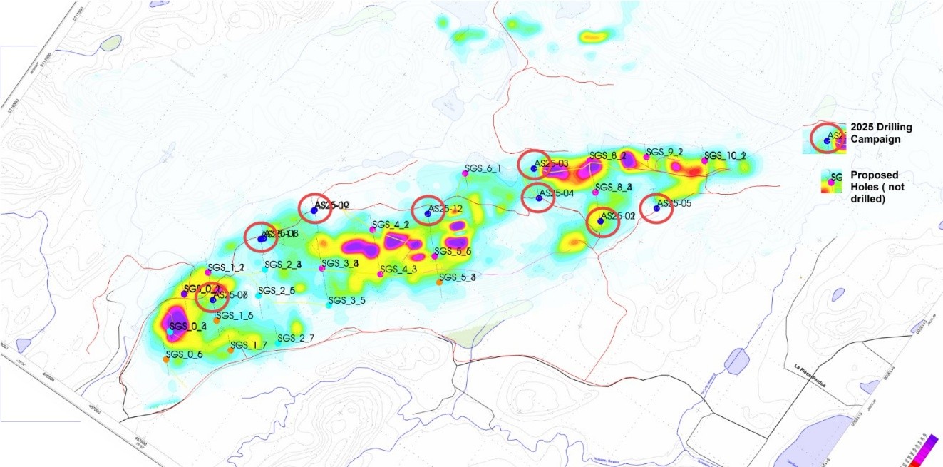 The program commenced on November 4th, 2025 and ended on December 10th 2025. Of the 5,200 meters planned, the Company was able to complete 2,517 meters across the entire length of Asbury's 5 Kilometer mineralization trend. When added to drill campaigns conducted in 2022 and 2023, this campaign will provide the company with over 7,500 meters of core samples which will continue its ongoing de-risking activity at Asbury.