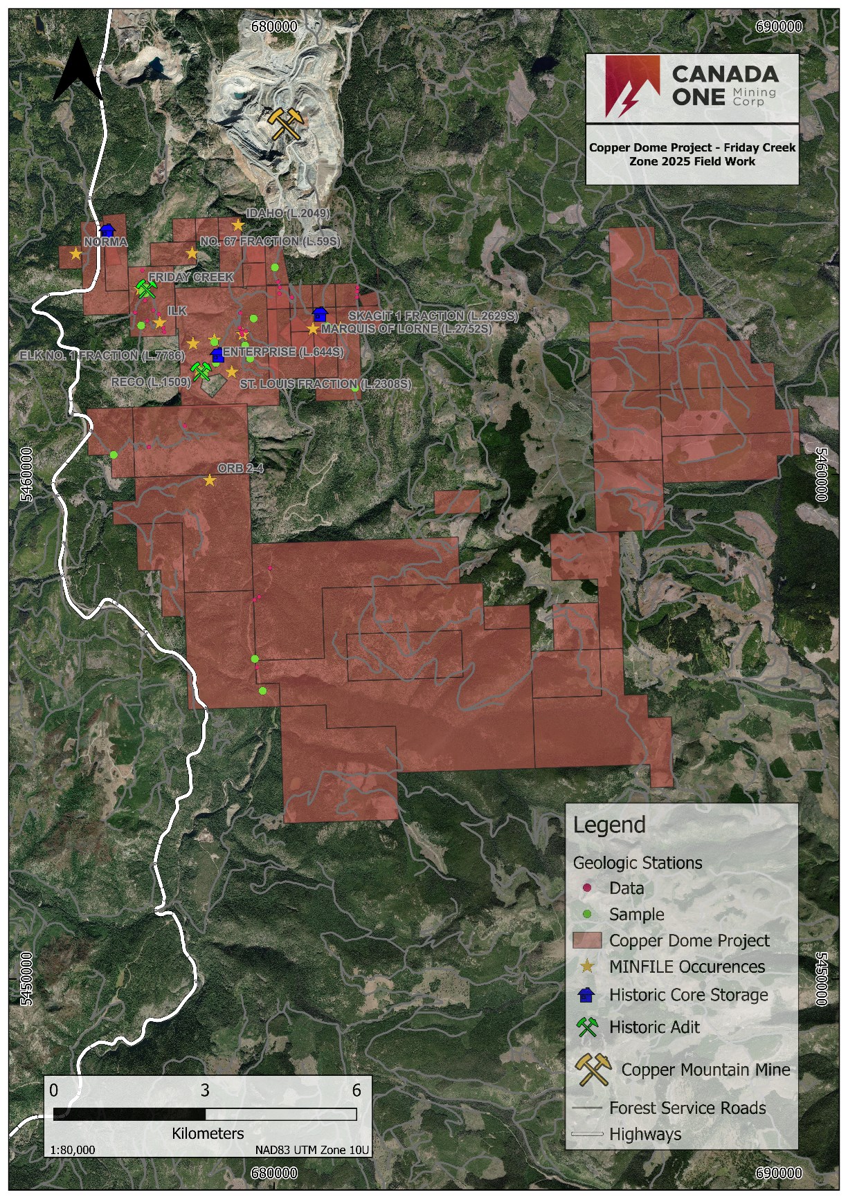 Canada One Mining Corp. is a Canadian junior exploration company focused on copper-the critical metal powering the global energy transition. The Company advances projects from discovery through resource definition with disciplined, data-driven exploration and responsible practices. Its flagship Copper Dome Project, near Princeton, British Columbia, targets a porphyry copper-gold system in a Tier-1 jurisdiction. Canada One aims to deliver sustainable growth and long-term value for shareholders and local communities.