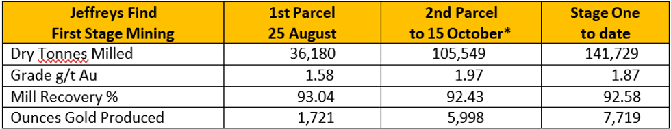 - Stage One gold production surpasses 7,700 ounces at 15 October 2023 as toll milling continues.