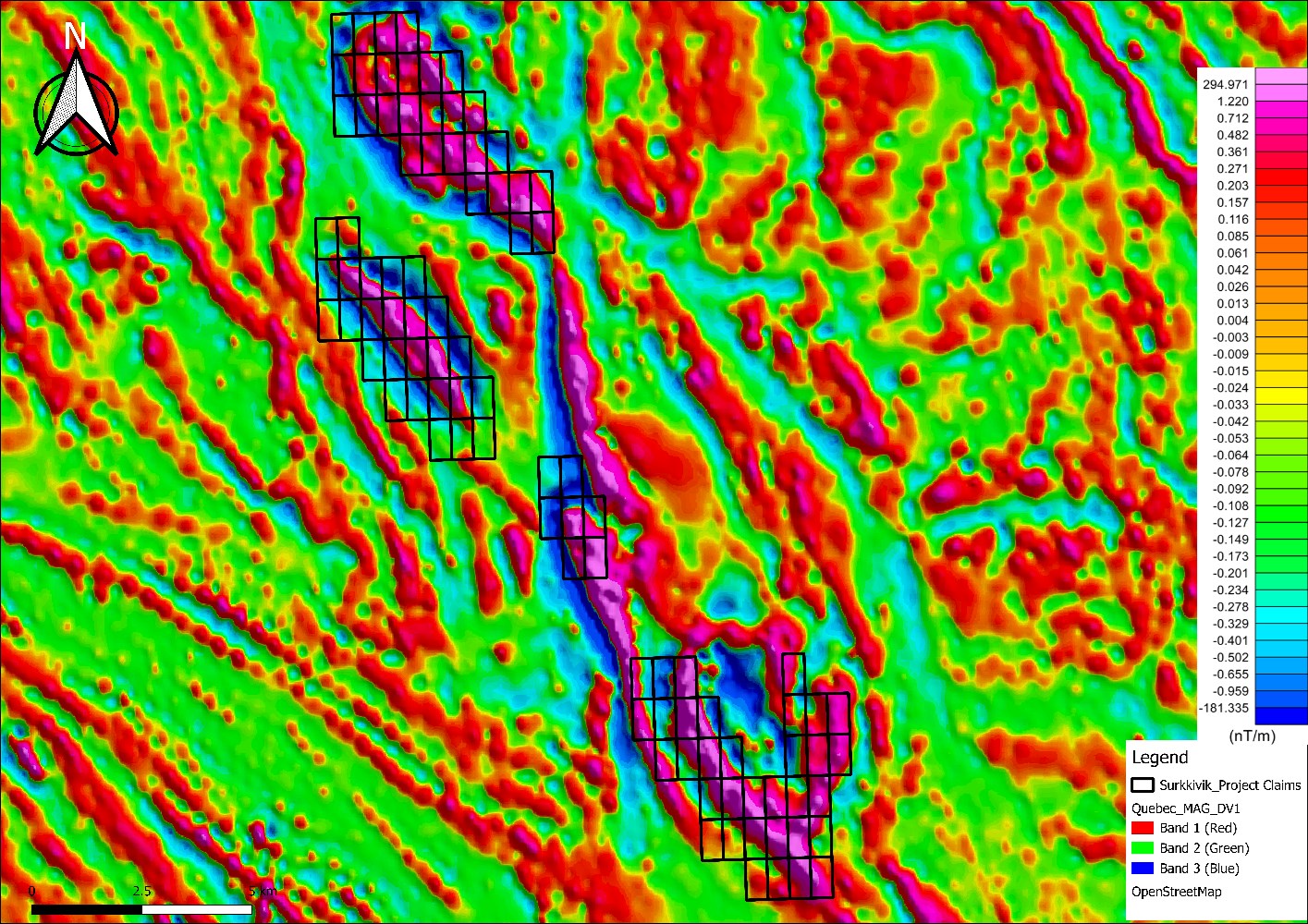 Figure 3: Quebec High Resolution Mag map with Project claims;