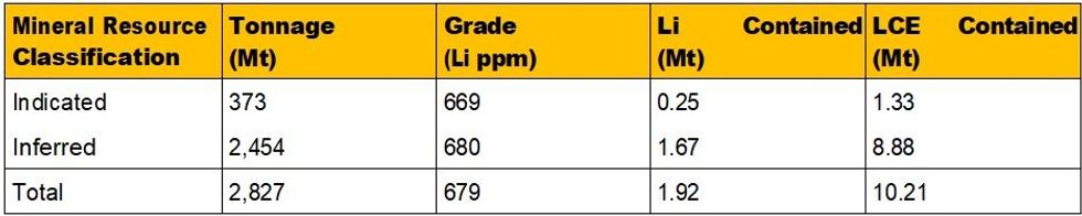 Effective Date 15 November 2023, reported by Pan American Energy Corp. Resources are reported above a cut-off grade of 300 ppm Li.