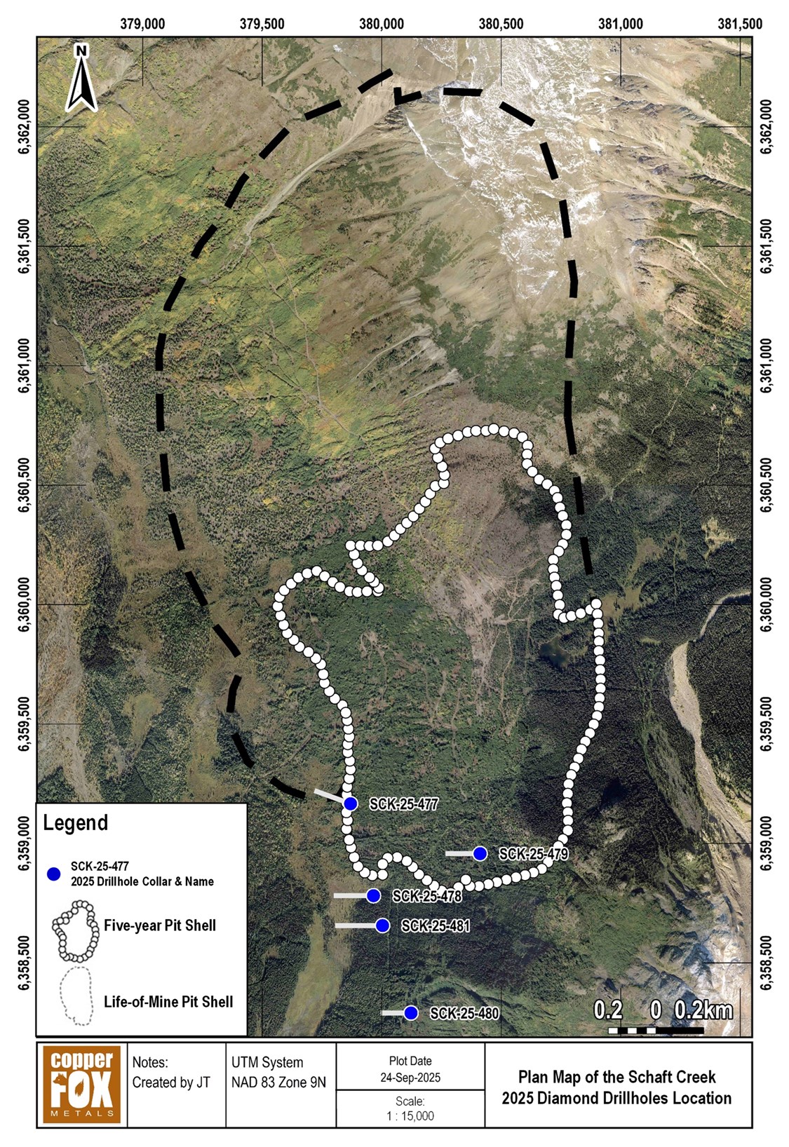 Copper Fox Metals Inc. (TSXV: CUU,OTC:CPFXF) (OTCQX: CPFXF) (FSE: HPU) ("Copper Fox" or the "Company") is pleased to provide an update on recent activities for the Schaft Creek copper-gold-molybdenum-silver project located in northwestern British Columbia. The Schaft Creek project is managed through the Schaft Creek Joint Venture ("SCJV"). Teck Resources Limited ("Teck") is the Operator of the SCJV and holds a 75% interest with Copper Fox holding the remaining 25% interest. The field program was completed in mid-September.