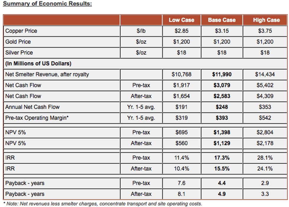 Nevada Copper Feasibility Study for Pumpkin Hollow: 15.5% IRR After-tax, 4.9 Year Payback