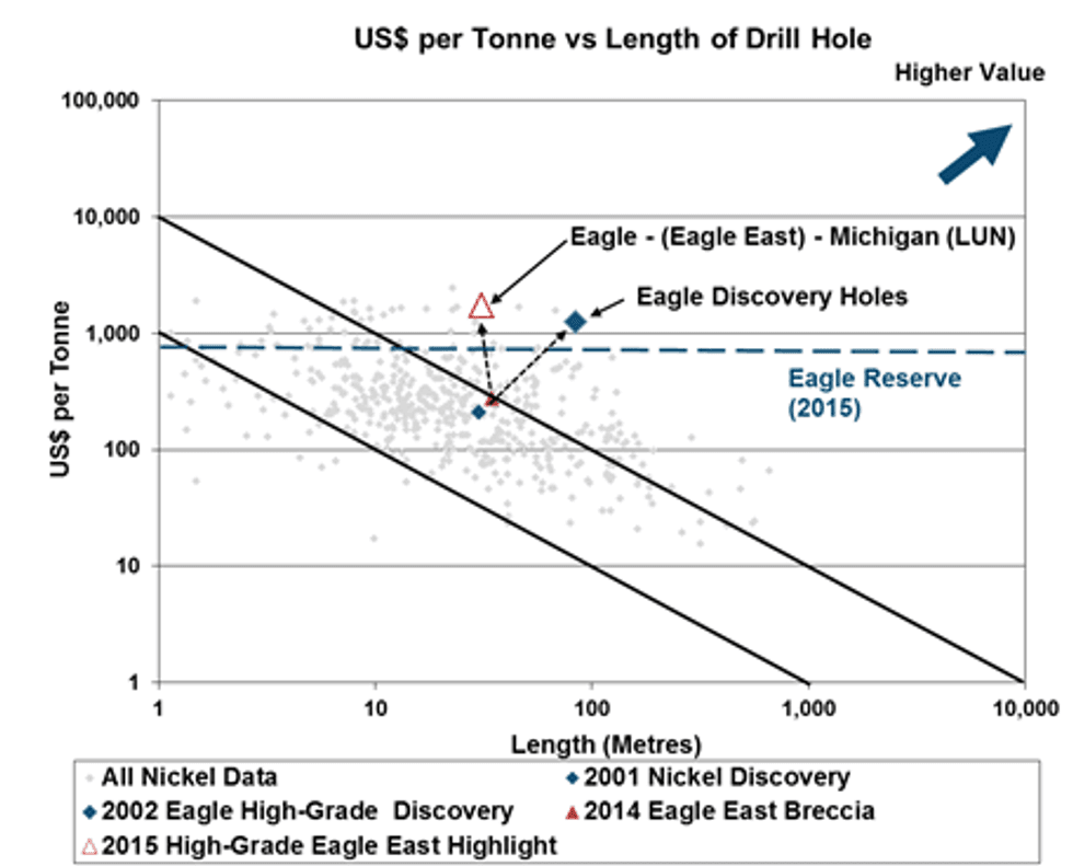 - Lundin Mining announced the discovery of a new high-grade nickel-copper zone two kilometres east of its 100% owned Eagle Mine in Michigan. Lundin acquired the partially constructed Eagle Mine from Kennecott in June 2013 for $325 million. The Company is using directional drilling providing a number of holes off a “mother hole” to access the deep targets with multiple holes.