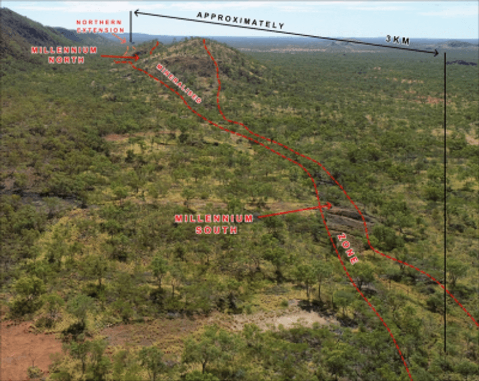 Figure 2: Oblique Photo of the Millennium Mineralised Zone.