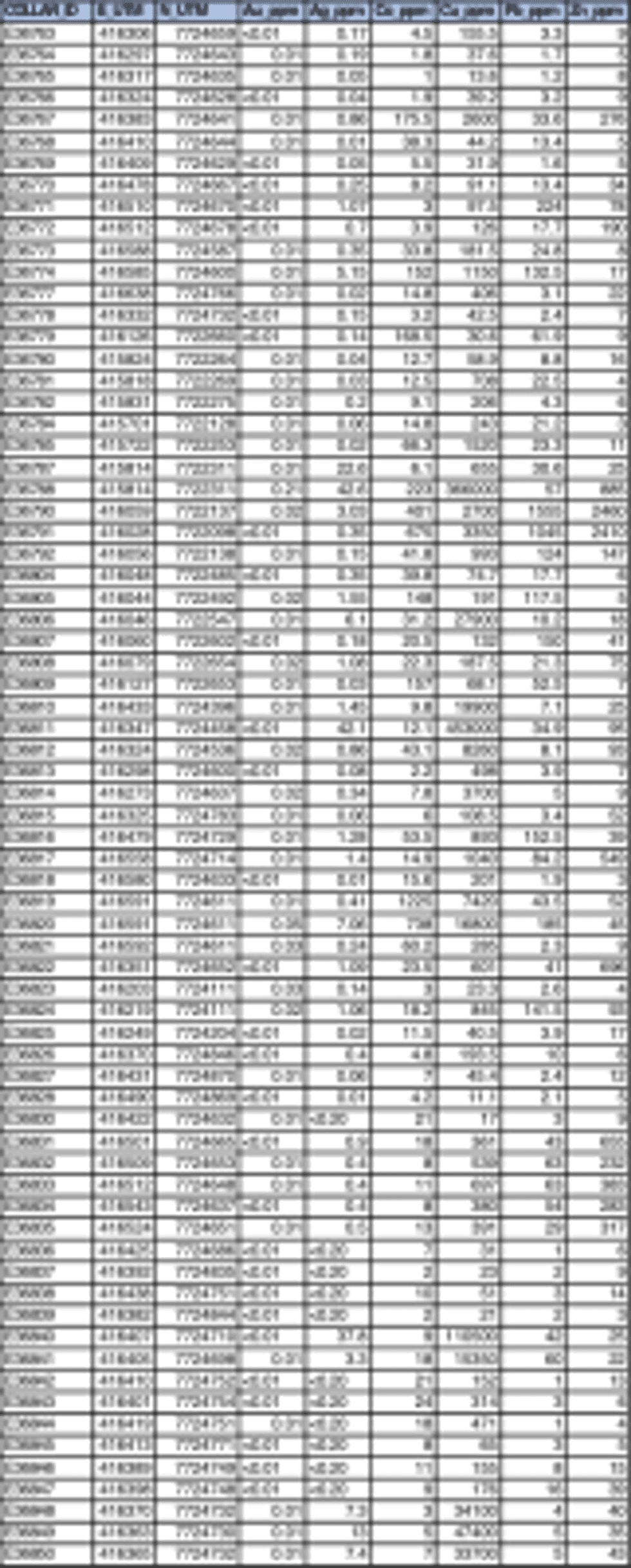 Table 1: Millennium Rock Chip Sampling Table