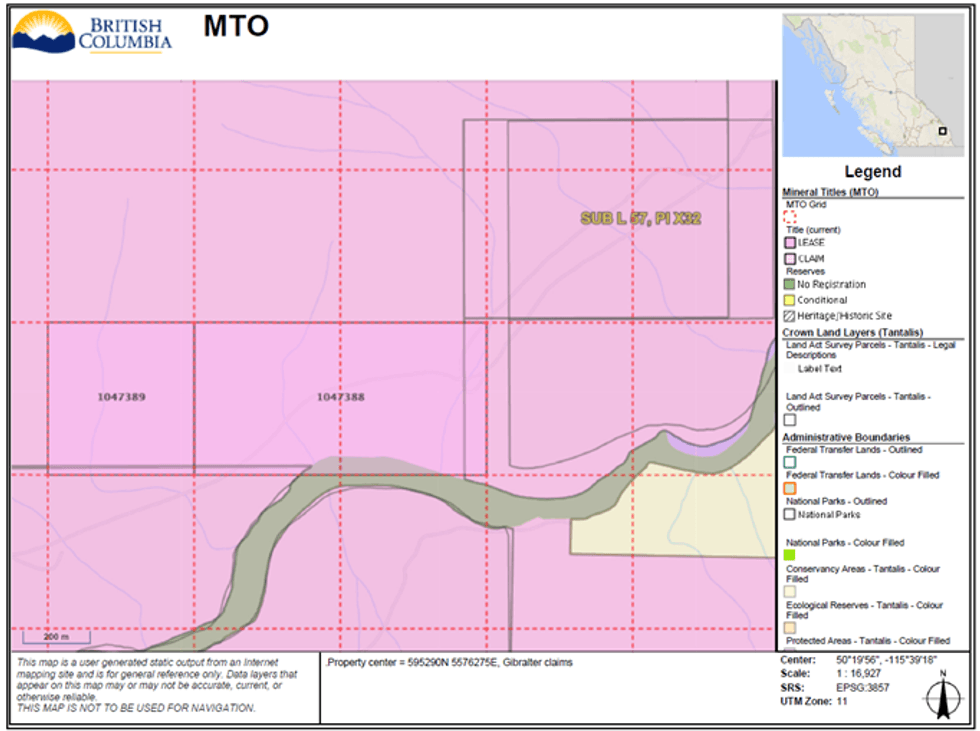 The Company is pleased to report it has acquired the Gibraltar property (the “Property”) located approximately 95 kilometers northeast of Cranbrook, BC (B.C. MINFILE 082JSW001). The Property features high purity quartzite that has the potential for technological applications, consisting of snow white coloured, high purity silica that contains >98.8% SiO2 and < 1.2% impurities such as Al2O3, Fe2O3, CaO, MgO, Na2O, K2O.