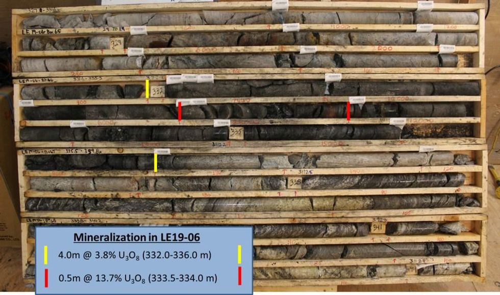 IsoEnergy Ltd. (TSXV:ISO) (OTC:ISENF) is pleased to announce that drill hole LE19-06 assayed 4.0 metres of 3.8% U3O8, including 0.5 metres @ 13.7% U3O8.