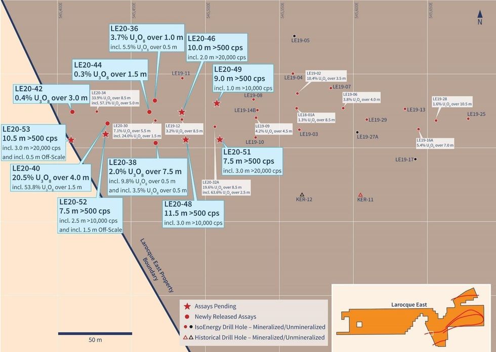 IsoEnergy Intersects 4.0m of 20.5 Percent U3O8 in Drill Hole LE20-40 and Drills More Off-Scale Uranium Mineralization