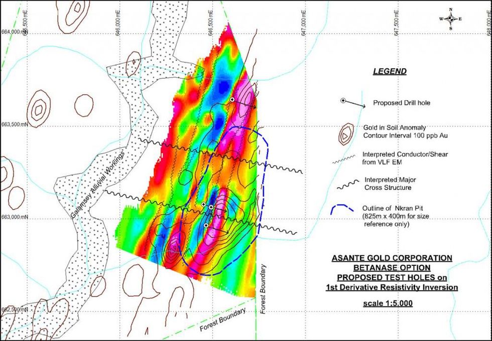 Betanase adjoins to the south of the AngloGold Ashanti/Randgold Resources Obuasi mining lease. The company plans to drill an initial four to six drill holes totalling 750 metres. Further updates and results will be provided as available.
