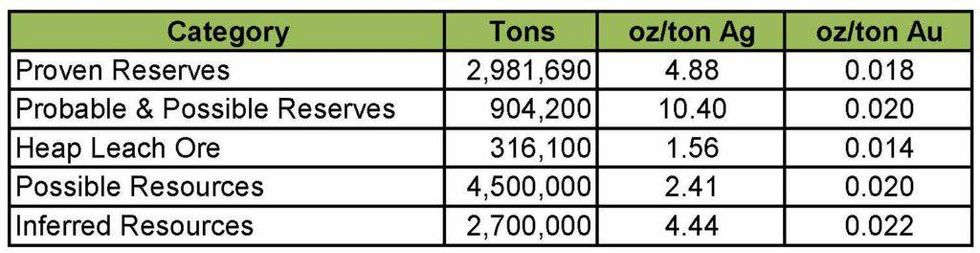 - Additional past production of 0.46Moz Ag from 49,700 tons, grading 9.35 troy ounces of silver per ton by a lessee from 1963 to 1975; and