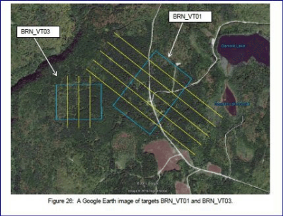 The High Priority Targets are defined as (BRN_VT01), (BRN_VT03) & (BRN_VT06). Minotaur Exploration Ltd (Australia) has processed the Geophysics. CDI inversions were conducted on all targets in order to better determine the target depth, dip and extent. Three component fixed loop ground EM will be executed over these targets as recommended. The Grid definitions are below.