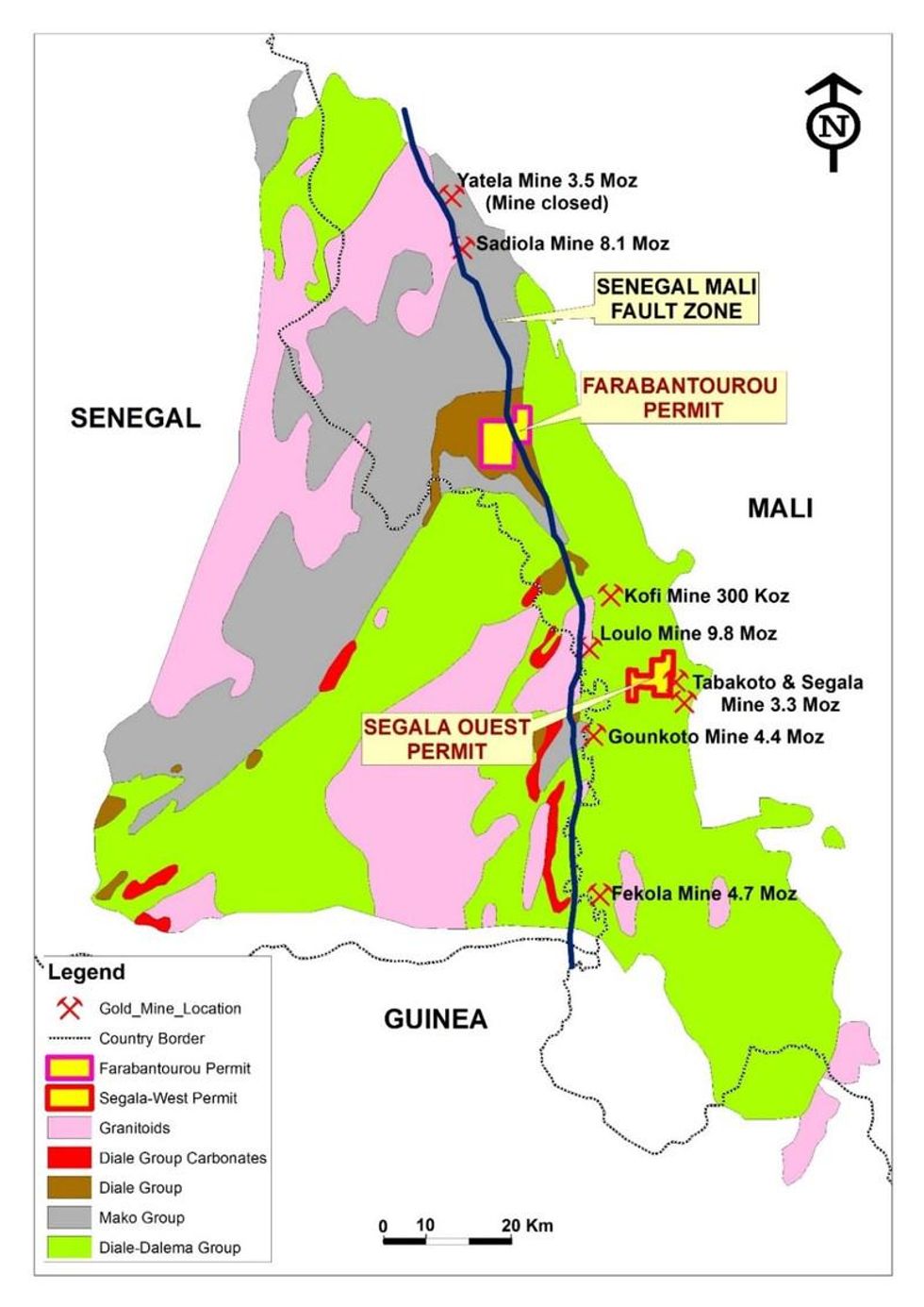 - The prospect is subparallel and proximal to the Mali-Senegal Shear Zone (MSSZ), along which the World Class gold mines of Sadiola, Loulo-Gounkoto complex and Fekola are situated