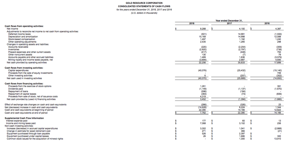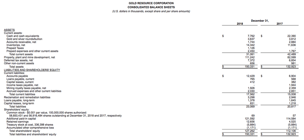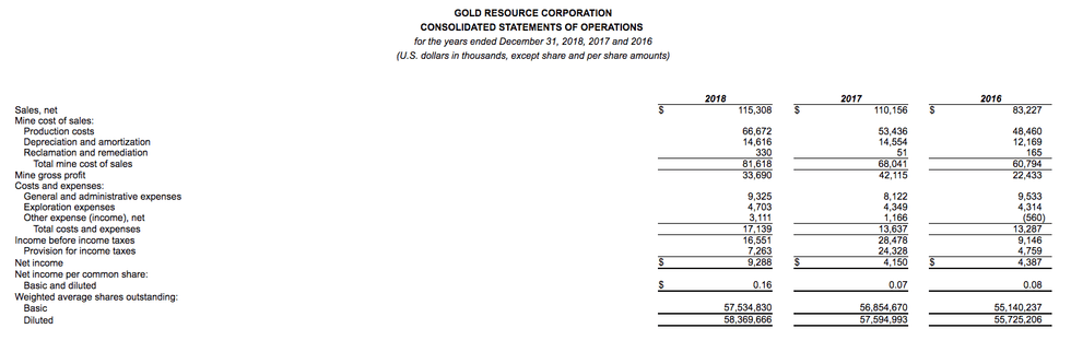 Gold Resource Corporation Achieves Eighth Consecutive Profitable Year Reporting $9.3 Million Net Income, $0.16 Per Share, Provides 2019 Production Outlook