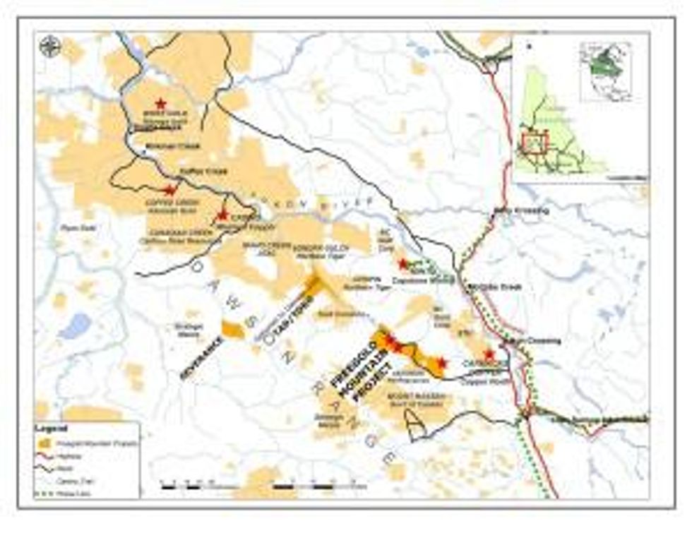 “We are very excited by this new high grade discovery and the potential implications it has on this under-explored area of the ~ 200 square kilometer Freegold Mountain Property,”