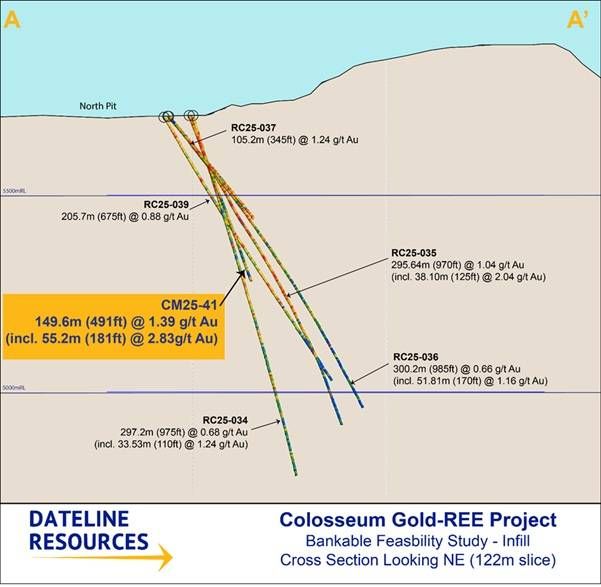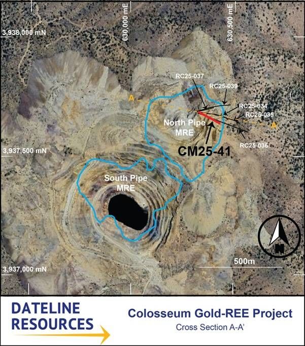 SAN BERNARDINO, CA / ACCESS Newswire / February 12, 2026 / Dateline Resources Limited (ASX:DTR,OTC:DTREF)(OTCQB:DTREF)(FSE:YE1) (Dateline or the Company) is pleased to report results from diamond core hole CM25-41 at its 100%-owned Colosseum Gold and Rare Earth Element (REE) Project in San Bernardino County, California. The hole was drilled in the northeast extension of the North Pipe breccia system, an area beyond the currently defined mineral resource boundary that has been progressively delineated through the Company's 2025 drilling program.