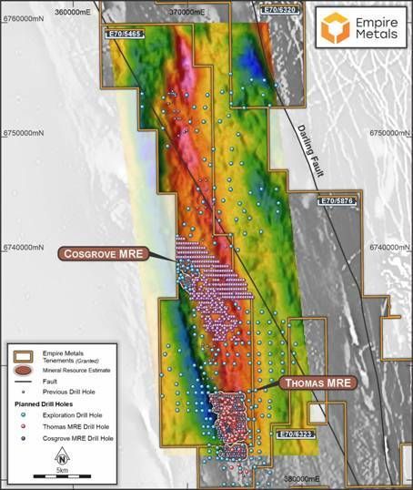 • The key outcome of the drilling will be an updated MRE at Thomas, with increased resource classification into the Measured and Indicated categories, and a significantly larger updated MRE at Cosgrove.