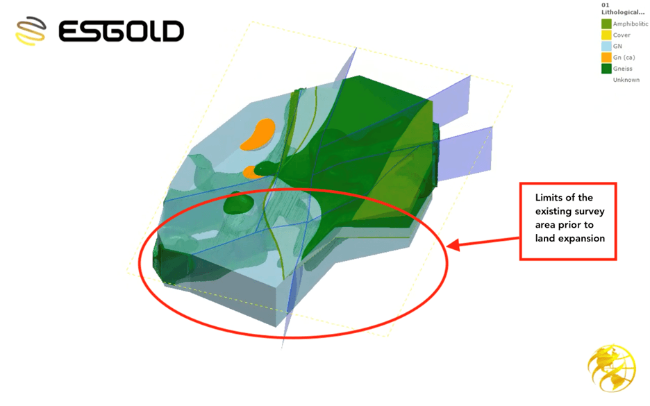 To date, only a portion of ESGold's land package has been evaluated using modern deep-penetrating geophysics.