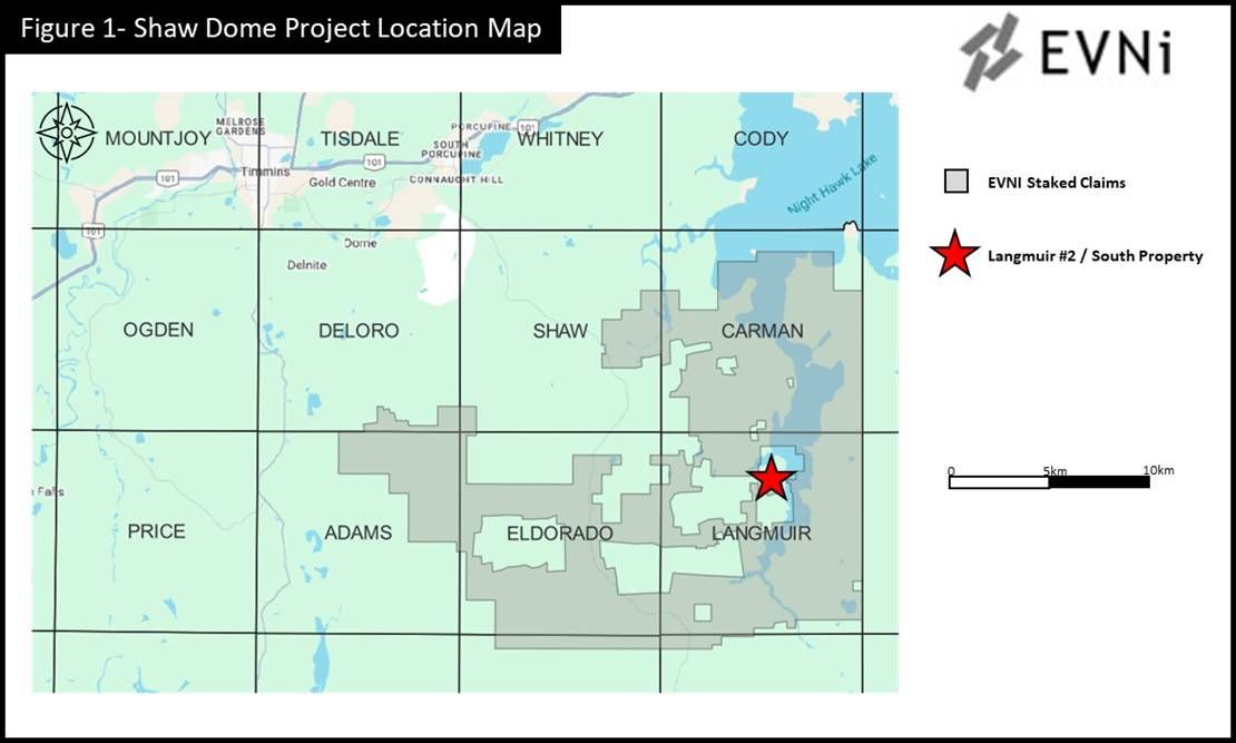 The historic Langmuir #2 mining infrastructure, including a capped, 440 metre deep mine shaft and associated drifts and raises being almost wholly contained within the EVNI property boundaries (Figure 2). When shut down in 1978, the Langmuir #2 Nickel Mine was reported to have historical Reserves at about 600,000 tons (>500k tonnes) averaging 1.45% Ni (source: Ontario Geological Survey Miscellaneous Paper 84 - Annual Report of the Regional and Resident Geologists 1978, pg. 51.; Timmins Daily Press, January, 1978). A qualified person has not done sufficient work to classify the historical estimate as current mineral resources or mineral reserves, and the Company is not treating the historical estimate as current mineral resources or mineral reserves.