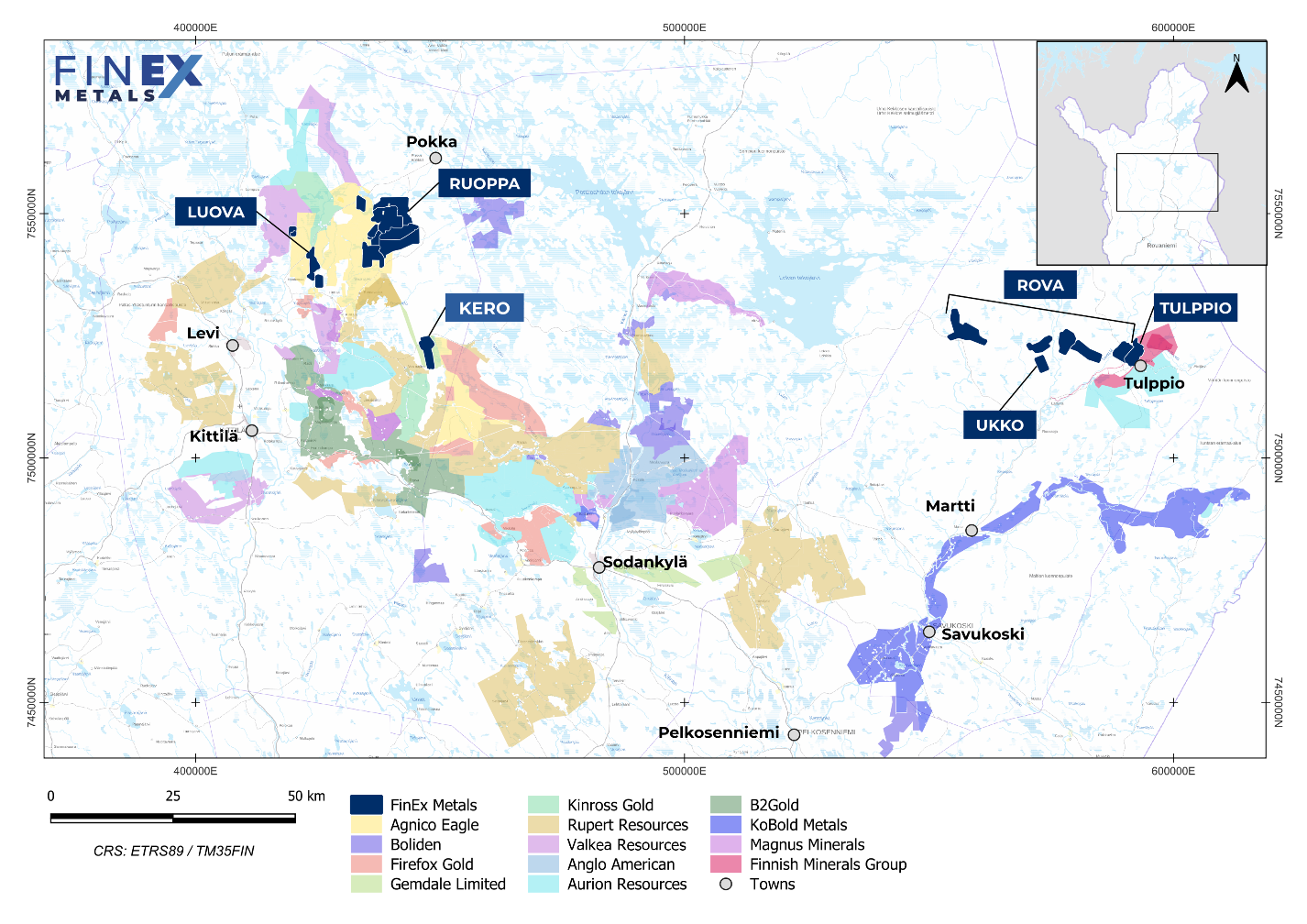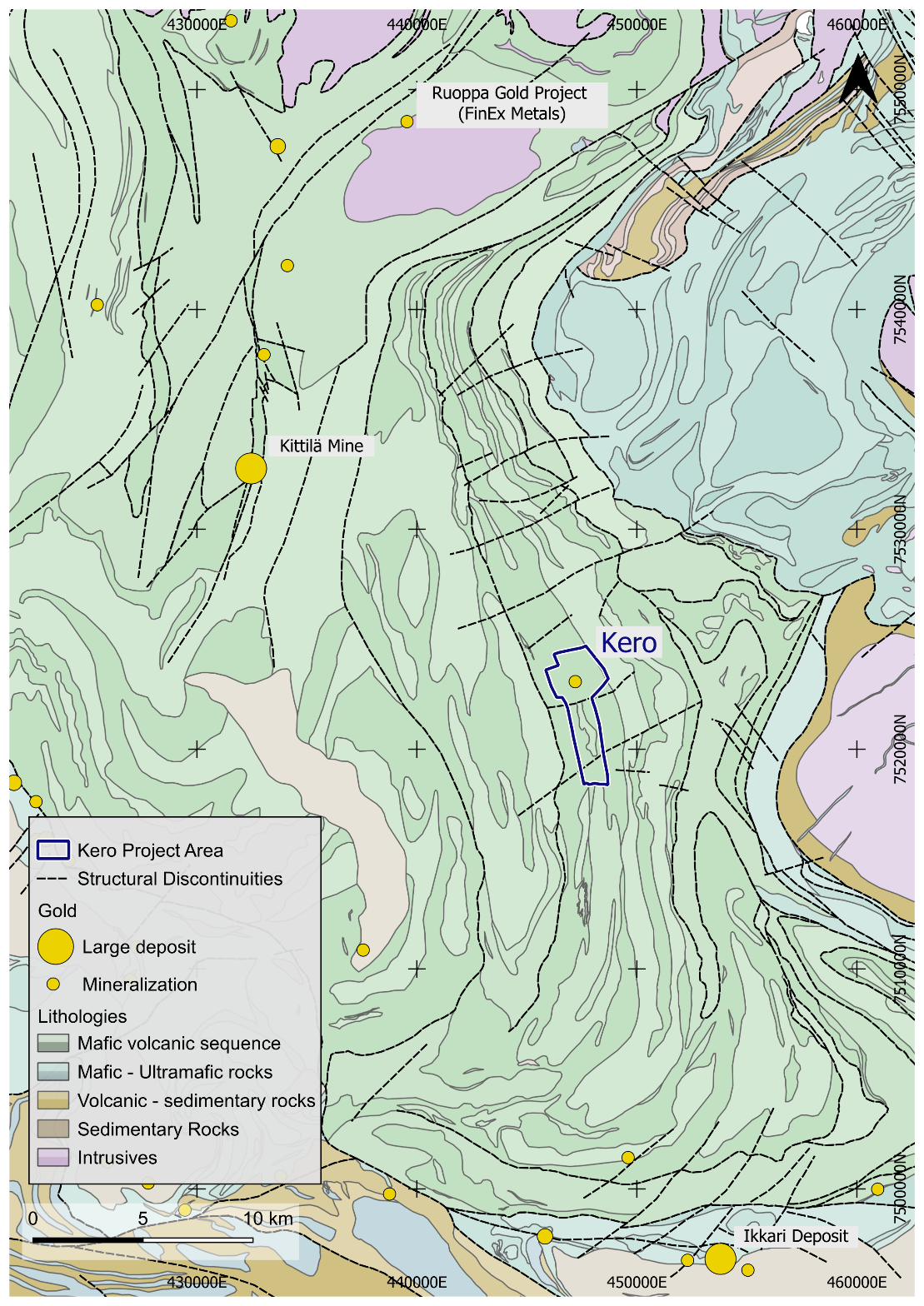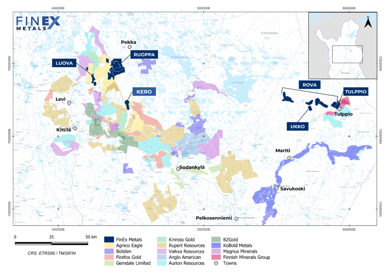 Vancouver, British Columbia, February 5, 2026 - TheNewswire - FinEx Metals Ltd. (TSX-V: FINX) ("FinEx" or the "Company") is pleased to announce that it has been granted the Kero mineral exploration license by the Finnish Mining Authority ("TUKES"). The 100%-owned Kero gold project is located in the Central Lapland Greenstone Belt ("CLGB") of northern Finland, approximately 15 km southeast of Agnico Eagle's Kittilä gold mine, Europe's largest primary gold operation and approximately 20 km northwest of Rupert Resources' multi-million-ounce Ikkari discovery (Figure 2)1.