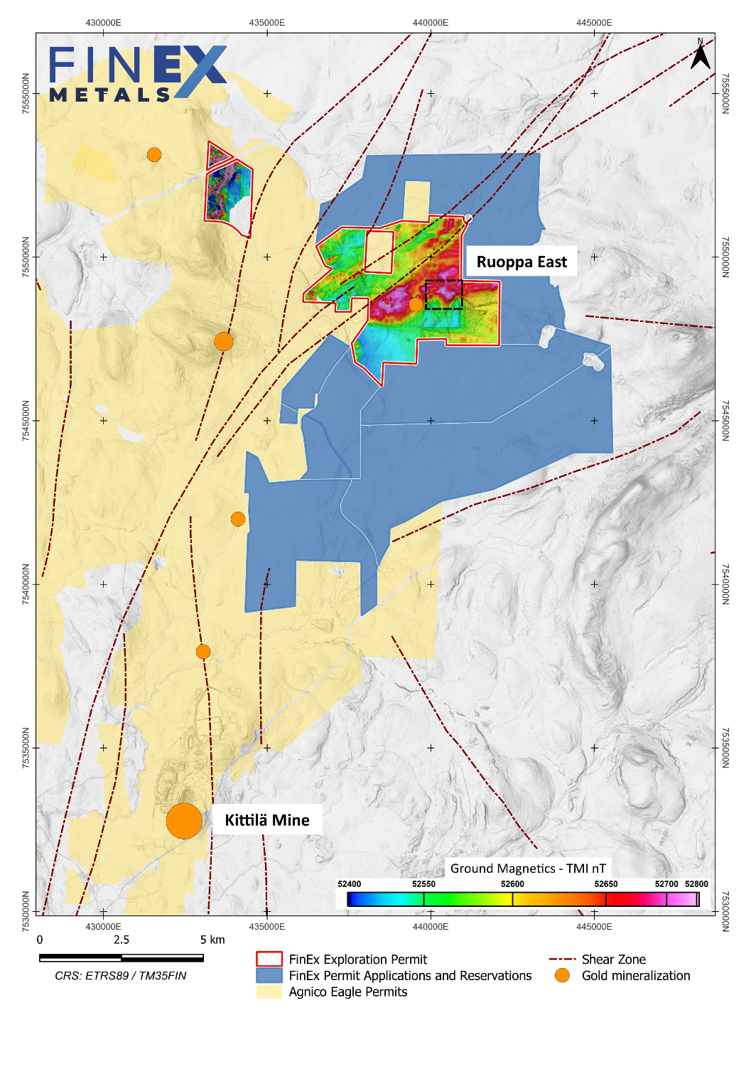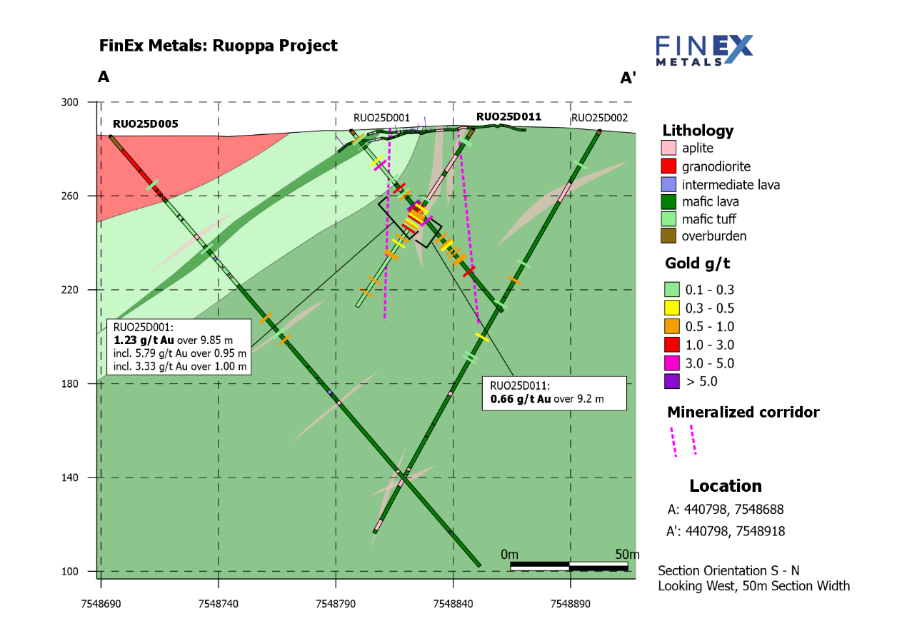 The Company's Ruoppa project is situated in the Central Lapland Greenstone Belt in Finland, adjoining Agnico Eagle's Kittilä mine land position, the largest gold mine in Europe and in proximity to the land position that hosts Rupert Resources' Ikkari discovery. Previous work by FinEx identified a series of gold targets that extend over approximately 2.7 km. For more information on the Ruoppa project, refer to the NI 43-101 Technical Report dated April 14, 2025, as filed on SEDAR+ at www.sedarplus.ca.