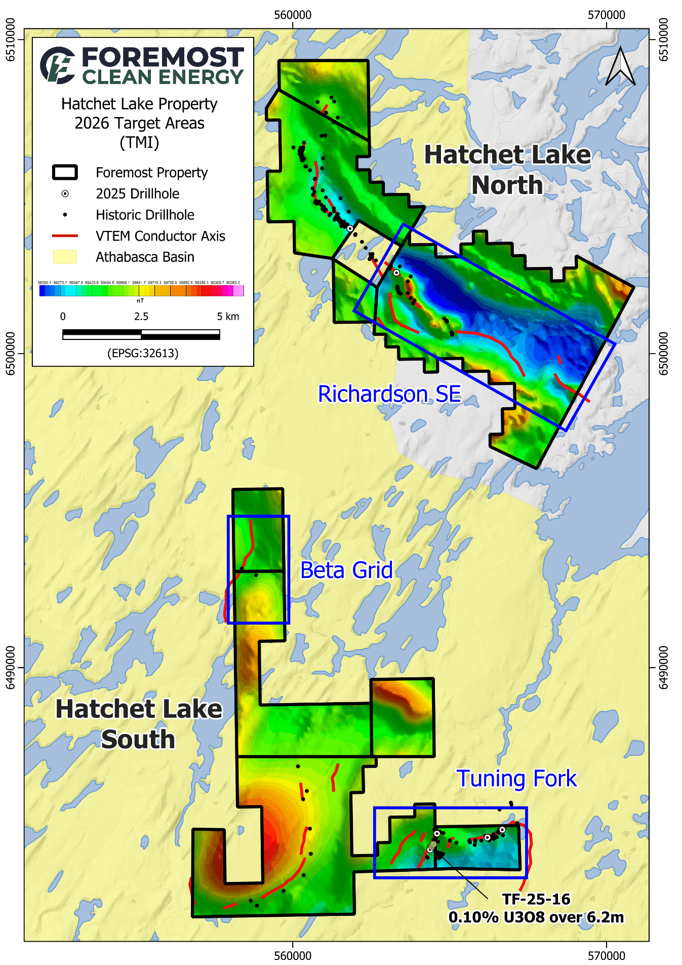 Jason Barnard, Foremost's President and CEO commented: "We are pleased to confirm that drilling is now underway at Hatchet Lake as we advance the Tuning Fork discovery. This program is designed to build on the 2025 results by systematically testing continuity of mineralization at the Athabasca unconformity and refining the structural and alteration framework controlling uranium mineralization. With multiple drill-ready targets defined across the property, we look forward to executing a focused and results-driven winter campaign."