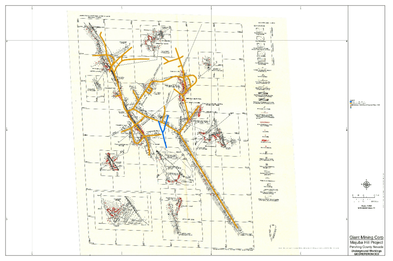 Figure 1: Underground Map of Majuba Hill Historical Copper-Silver-Gold Mine