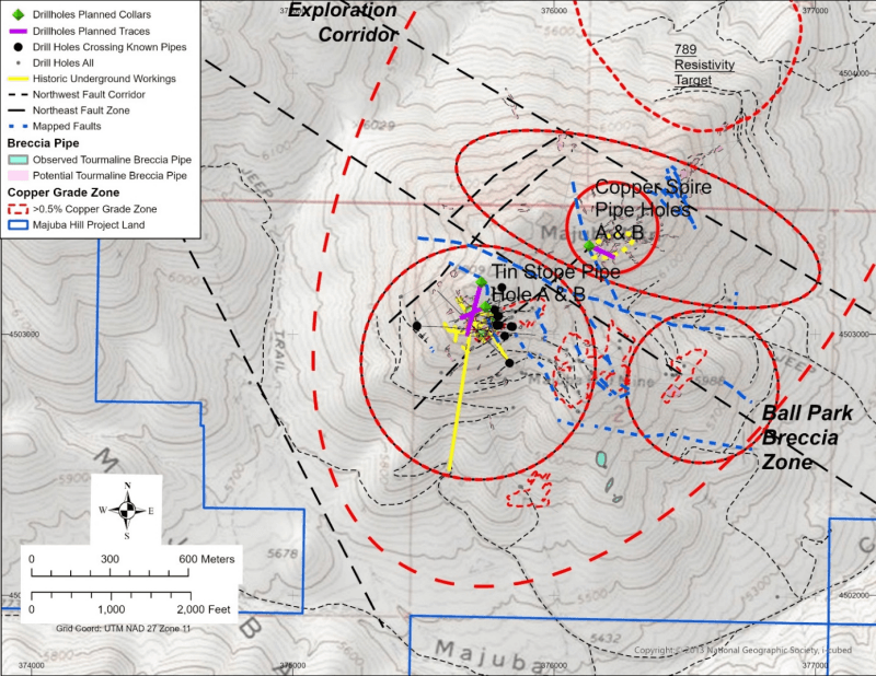 Mr. David Greenway commented: "Our understanding of the Majuba Hill system continues to advance through the integration of geological modeling, historical data, and A.I.-assisted targeting tools. These deep drill holes are designed to test priority zones identified through this data-driven approach, including areas beneath historical workings that remain underexplored by modern drilling, based in part on work conducted by previous operators, including historic drilling by Freeport Sulfur in the 1940's and Mine Finders in the 1970's. By combining advanced analytics with core geological interpretation, we aim to better define the scale and continuity of mineralization at depth."