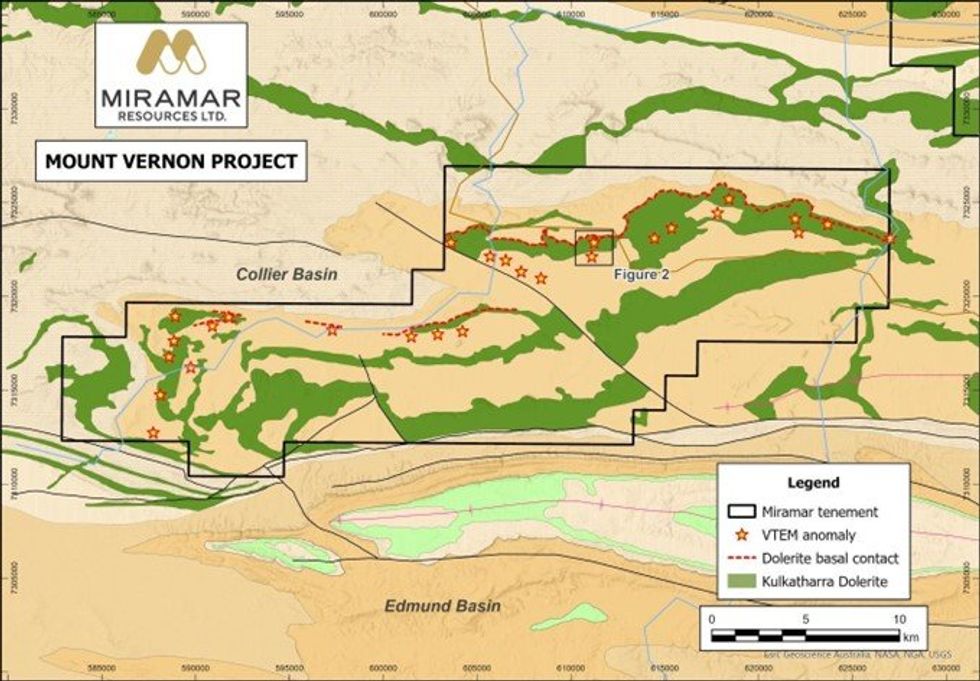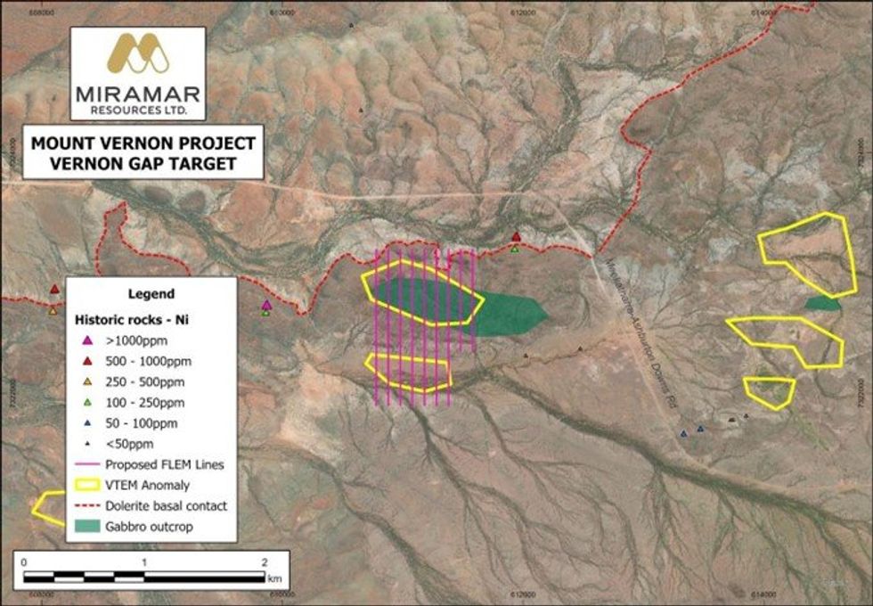 Miramar Resources Limited (ASX:M2R, “Miramar” or “the Company”) is pleased to advise that geophysical contractors have commenced a fixed loop electromagnetic (FLEM) survey at the Company’s 100%-owned Mount Vernon nickel, copper and platinum group element (Ni-Cu-PGE) Project, part of the Company’s district-scale Bangemall Project in the Gascoyne region of Western Australia.