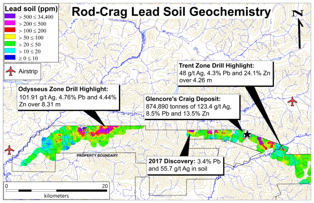 The surrounding claims that include Crag and Rod cover approximately 31,200 hectares of highly prospective ground, providing Hertz with a large, consolidated land position in a proven and mining-friendly jurisdiction. The consolidation of the Craig Deposit with the Crag and Rod project areas significantly strengthens Hertz's strategic footprint within the Rackla Belt and positions the Company for district-scale exploration success. The Rod Project is positioned adjacent to the Crag Project and expands the prospective structural corridor. Historical exploration documents multiple styles of mineralization including silver-dominant veins, stratiform base-metal occurrences, and structurally controlled polymetallic systems. Historical soil geochemical surveys outlined very strong multi-element anomalies, including values of (source: Yukon Exploration and Geology 2009):
