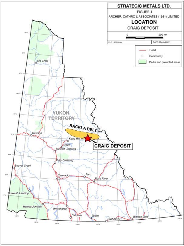 Figure 1: Craig Deposit, including Rod and Crag properties, on Rackla Belt, Yukon. Credit: Strategic Metals Ltd.