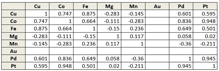Strong Geological Correlation: Multi-element analysis shows a strong positive correlation between nickel, cobalt, iron, and Platinum Group Metals (PGEs) (r = 0.83-0.95), suggesting a common magmatic sulfide origin.
