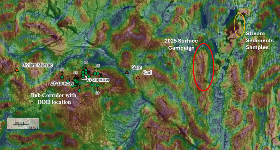 Picture 1. Manicouagan Project with Bob corridor drill zone in relation to the 2025 campaign
