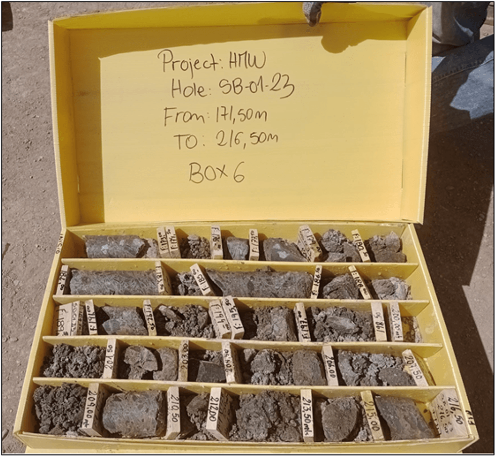 Maiden Santa Barbara exploration well, SB-01-23, was drilled in the Santa Barbara XXIV tenement (Figure 1). This diamond drillhole was completed to 455 metres depth.