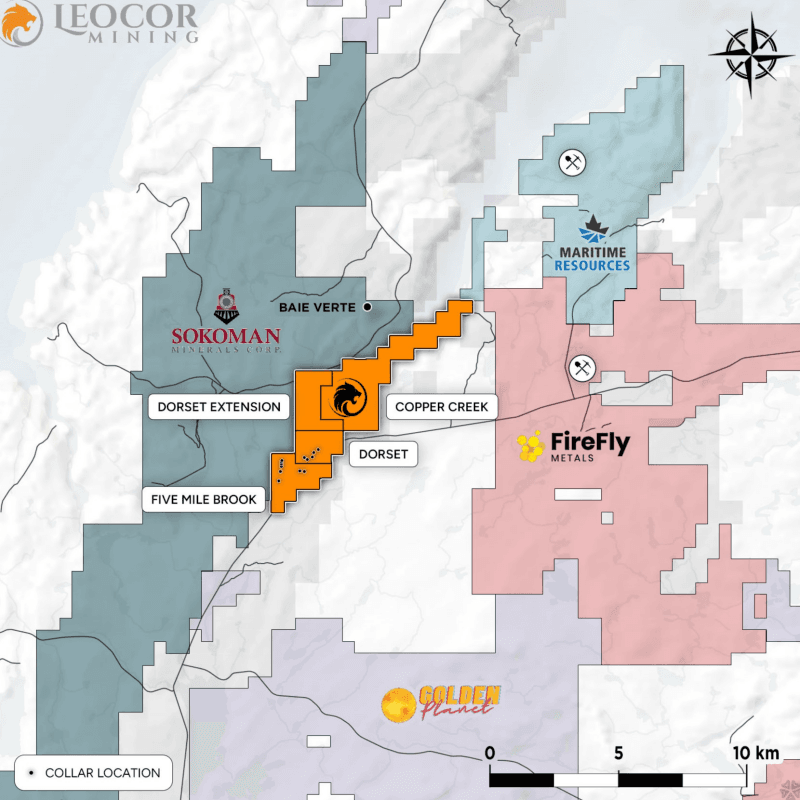 Leocor Mining Inc. is a British Columbia-based resource company involved in the acquisition and exploration of precious metal projects, with a current focus in Atlantic Canada. Leocor, through outright ownership and earn-in agreements, currently controls several gold-copper projects in prime exploration ground located within the prolific Baie Verte Mining District. Leocor's Bae Verte portfolio includes the Dorset, Dorset Extension, Copper Creek and Five Mile Brook projects, creating a contiguous ~2,000-hectare exploration corridor. For more information, sign up for news alerts, watch our corporate video, or view our presentation at our website.