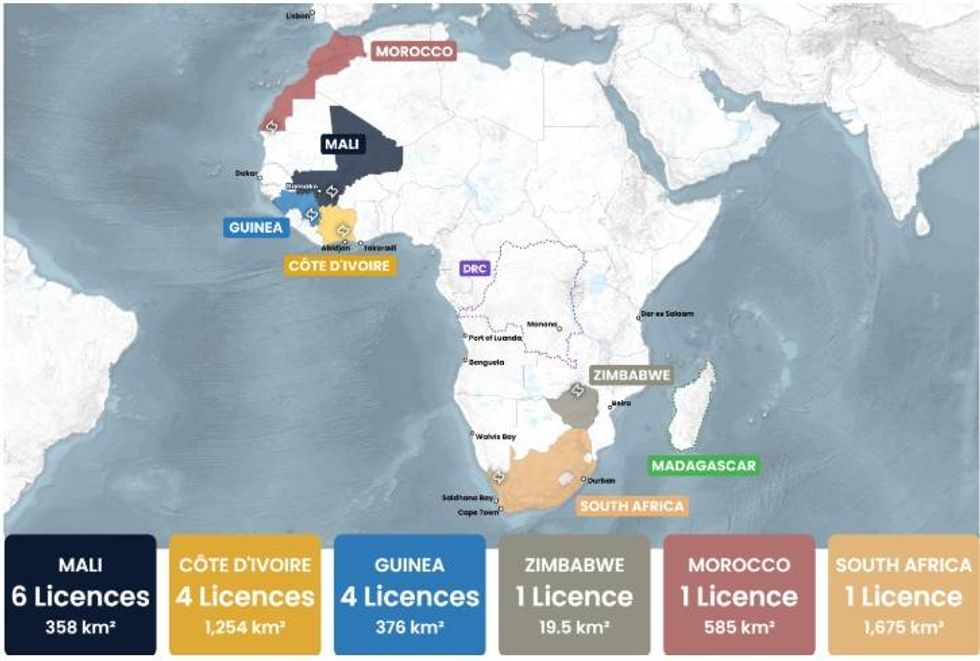 - First-Mover, District-Scale Footprint: Over 4,200 km2 of tenure across Ivory Coast, Guinea, Mali, Morocco, Zimbabwe and South Africa, strategically positioned across Africa's most underexplored pegmatite belts and designed to maximize diversification in discovery strategy.