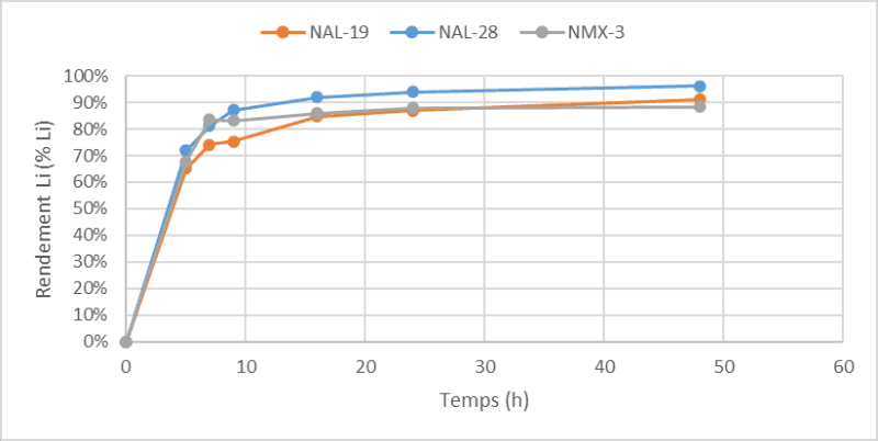 Figure 1 – Lithium Recovery vs Time (hr.) (Laboratory Results)